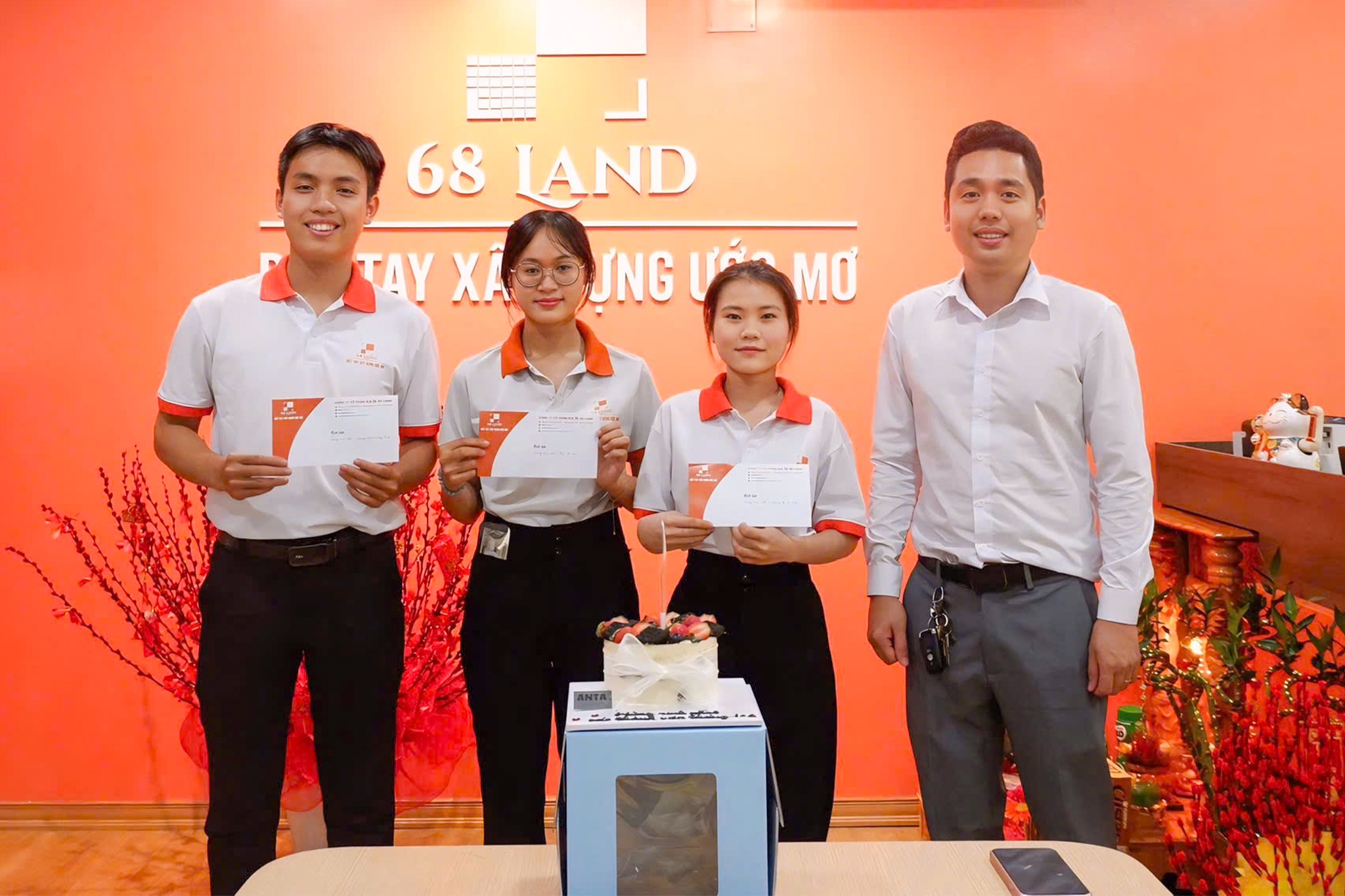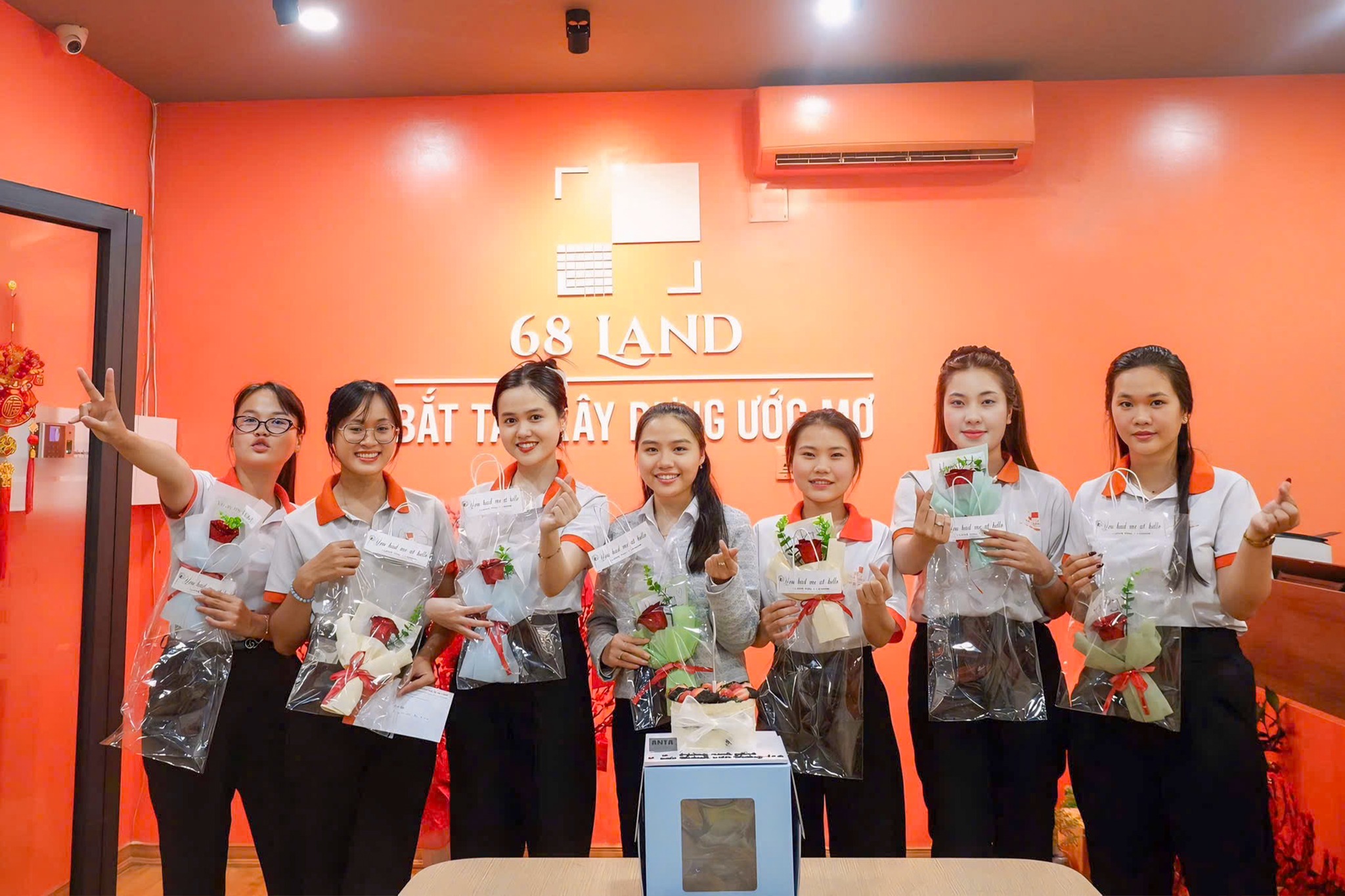 Dù hôm nay là ngày của chị em, nhưng spotlight lại thuộc về dàn “soái ca” 68 Land khi chuẩn bị những bó hoa tươi thắm, những lời chúc chân thành và một buổi tiệc nhỏ ấm áp dành riêng cho các chị em trong công ty.
